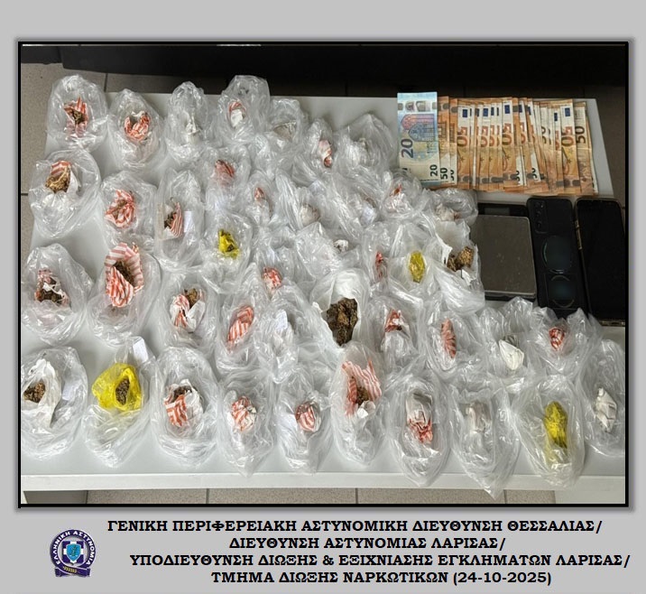 Συνελήφθησαν, χθες (23-10-2025) το μεσημέρι στη Λάρισα, από αστυνομικούς του Τμήματος Δίωξης Ναρκωτικών της Υποδιεύθυνσης Δίωξης και Εξιχνίασης Εγκλημάτων Λάρισας, -2- αλλοδαποί άνδρες, για παράβαση της νομοθεσίας περί ναρκωτικών. Ειδικότερα, μετά από κατάλληλη αξιοποίηση στοιχείων για κατοχή και διακίνηση ποσοτήτων κάνναβης από τον έναν δράστη,…