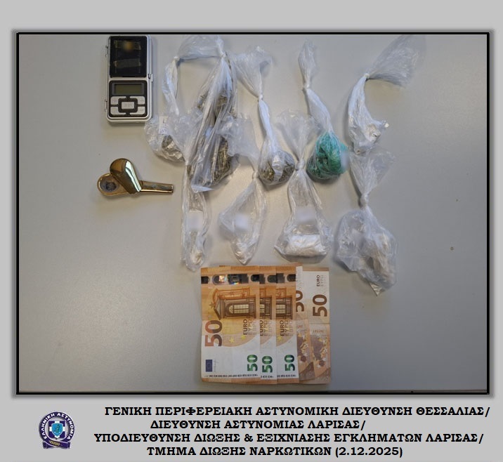 Συνελήφθη, χθες (1-12-2025) το μεσημέρι σε περιοχή του Δήμου Τυρνάβου, από αστυνομικούς του Τμήματος Δίωξης Ναρκωτικών της Υποδιεύθυνσης Δίωξης και Εξιχνίασης Εγκλημάτων Λάρισας, ένας ημεδαπός άνδρας, σε βάρος του οποίου σχηματίστηκε δικογραφία για παράβαση της νομοθεσίας περί ναρκωτικών.