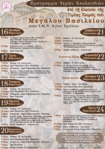 -6.30 μμ: Αγιασμός και αναχώρηση Τιμίας Χειρός.
