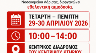Οι ηλεκτρονικές εγγραφές για τον 4ο Αγώνα Δρόμου «Run for Autism Larissa 2026» ολοκληρώνονται τα μεσάνυχτα της Τρίτης 21 Απριλίου. Ωστόσο, θα υπάρξει η δυνατότητα δηλώσεων συμμετοχής έως και το Σάββατο, στα γραφεία του Συλλόγου, στην οδό Πατρόκλου 8, καθώς και στο περίπτερο του Συλλόγου στην Κεντρική Πλατεία, στο πλαίσιο της δράσης «Μαζί μια αγκαλιά», …