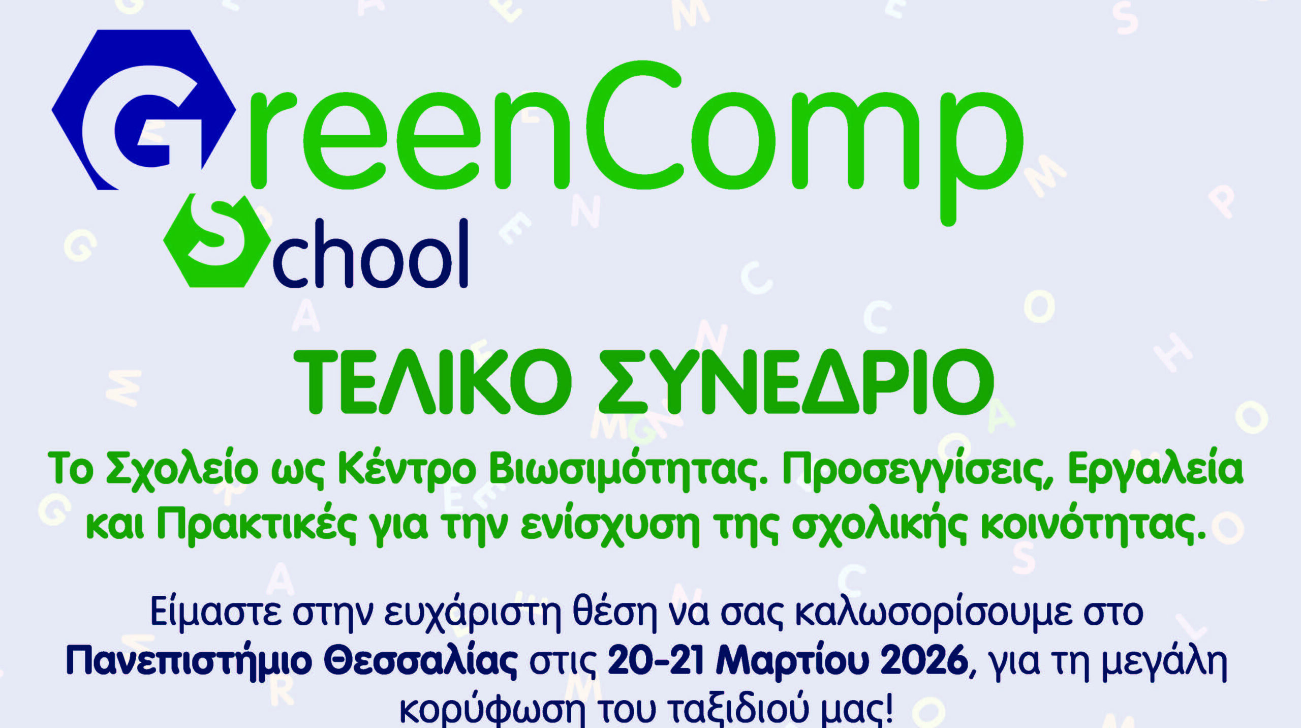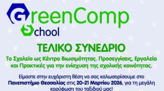 Το Πανεπιστήμιο Θεσσαλίας διοργανώνει στις 20 και 21 Μαρτίου 2026 διεθνές συνέδριο στο πλαίσιο του ευρωπαϊκού προγράμματος GreenCompSchool (Erasmus+), με αντικείμενο τον ρόλο του σχολείου ως «κόμβου βιωσιμότητας» και την ενίσχυση της σχολικής κοινότητας μέσα από σύγχρονες προσεγγίσεις, εργαλεία και εκπαιδευτικές πρακτικές. Κεντρικός στόχος του συνεδρίου είναι η παρουσίαση των αποτελεσμάτων του έργου GreenCompSchool, με …