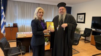 Επίσκεψη του Σεβασμιότατου Μητροπολίτη Λαρίσης και Τυρνάβου κ. Ιερώνυμου στη Γενική Γραμματέα Α.Δ.Θ.Στ.Ε., κα Ρένα Καραλαριώτου