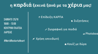 Η Ελληνική Ομάδα Διάσωσης Λάρισας σας προσκαλεί σε μια εκδήλωση αφιερωμένη στη ζωή. Μια δράση ενημέρωσης, εξάσκησης και ευαισθητοποίησης, που έχει σκοπό να δείξει σε όλους ότι η σωστή αντίδραση στα πρώτα κρίσιμα λεπτά μιας καρδιακής ανακοπής μπορεί να κάνει τη διαφορά ανάμεσα στη ζωή και τον θάνατο. Κάθε χρόνο, περισσότερα από 350.000 περιστατικά καρδιακής ανακοπής καταγράφονται …