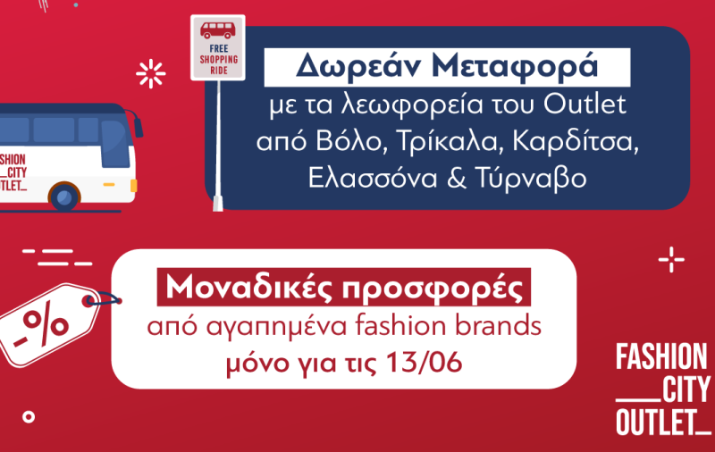 Εκπτώσεις έως και 80% στο Fashion City Outlet – Με ανοιχτά καταστήματα την Κυριακή, παιδικές δραστηριότητες και δωρεάν λεωφορεία από τη Θεσσαλία!