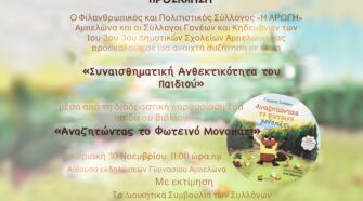 Ο Φιλανθρωπικός και Πολιτιστικός Σύλλογος «H ΑΡΩΓΗ» Αμπελώνα συνδιοργανώνει με τους Συλλόγους Γονέων και Κηδεμόνων των 1ο, 2ο και 3ο Δημοτικών Σχολείων Αμπελώνα, και σας προσκαλούν σε μία ξεχωριστή και βιωματική εκδήλωση που θα πραγματοποιηθεί την Κυριακή 30 Νοεμβρίου 11:00 π.μ στην αίθουσα εκδηλώσεων του Γυμνασίου Αμπελώνα Λάρισας. Μία συζήτηση για τη συναισθηματική ανθεκτικότητα του …